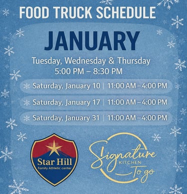 This winter, Signature Kitchen ToGo is proud to be operating regularly at Star Hill, serving athletes, families, and guests fresh, flavorful comfort food straight from the truck. Whether you’re coming for a game, practice, or just great food, we’ll be there to fuel you up.