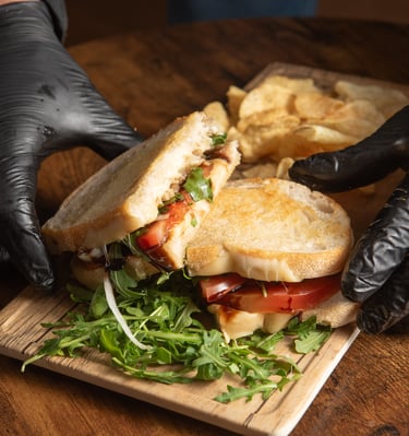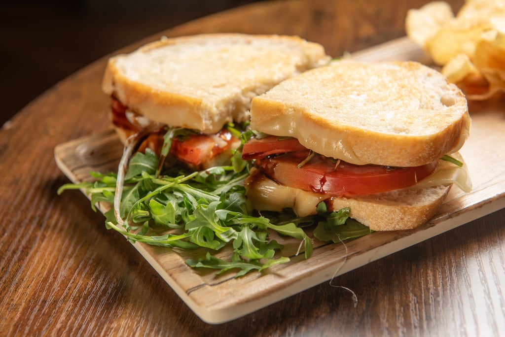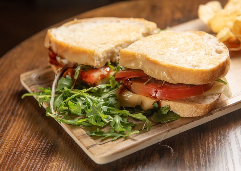 Melted mozzarella cheese, sweet onions, and tomatoes meet fresh arugula and fig balsamic on buttery sourdough. Served with chips