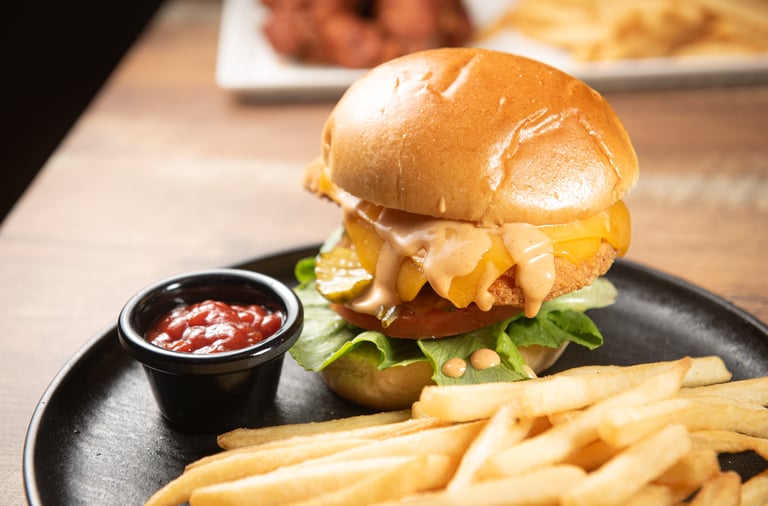 Crispy golden chicken with melted cheddar, lettuce, tomato, and our creamy Signature Sauce. Served with fries.