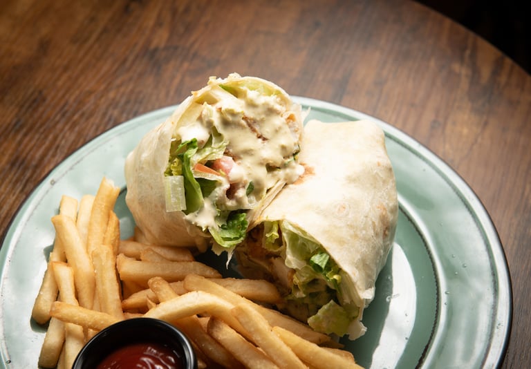 Crispy chicken, lettuce, tomato, and creamy jalapeño sauce wrapped for the perfect kick. Served with fries.