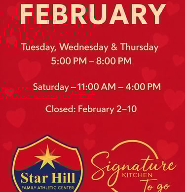 This winter, Signature Kitchen ToGo is proud to be operating regularly at Star Hill, serving athletes, families, and guests fresh, flavorful comfort food straight from the truck. Whether you’re coming for a game, practice, or just great food, we’ll be there to fuel you up.